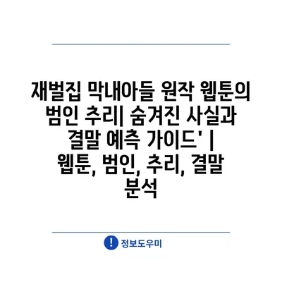 재벌집 막내아들 원작 웹툰의 범인 추리| 숨겨진 사실과 결말 예측 설명서’ | 웹툰, 범인, 추리, 결말 분석 에 대해 자주 묻는 질문 TOP 5