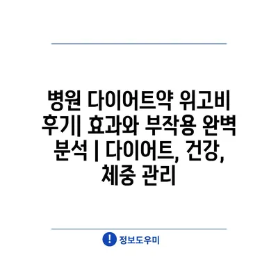 병원 다이어트약 위고비 후기| 효과와 부작용 완벽 분석 | 다이어트, 건강, 체중 관리