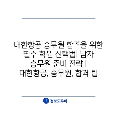 대한항공 승무원 합격을 위한 필수 학원 선택법| 남자 승무원 준비 전략 | 대한항공, 승무원, 합격 팁