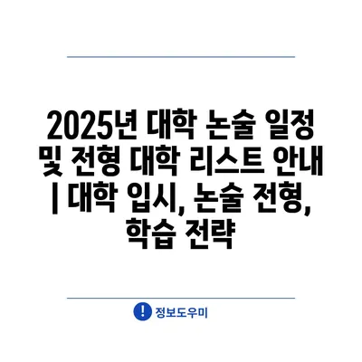 2025년 대학 논술 일정 및 전형 대학 리스트 안내 | 대학 입시, 논술 전형, 학습 전략