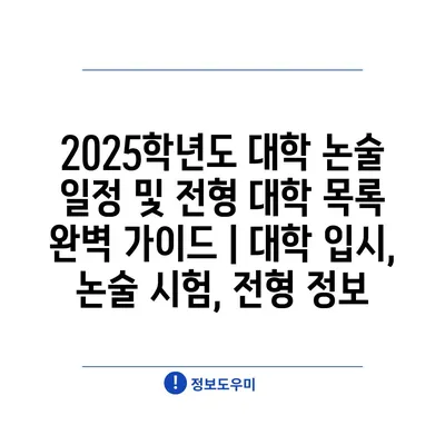 2025학년도 대학 논술 일정 및 전형 대학 목록 완벽 가이드 | 대학 입시, 논술 시험, 전형 정보