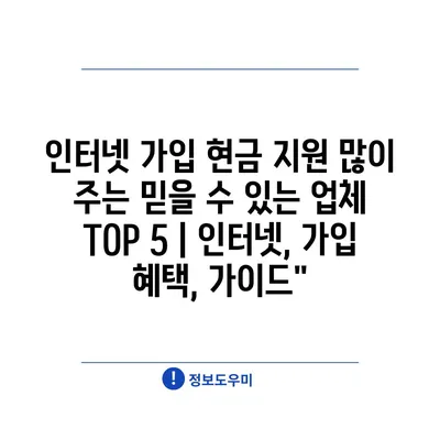 인터넷 가입 현금 지원| 효과적인 비교와 최적의 선택 방법 | 인터넷 서비스, 현금 지원, 가입 혜택