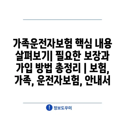 가족운전자보험 핵심 내용 살펴보기| 필요한 보장과 가입 방법 총정리 | 보험, 가족, 운전자보험, 안내서