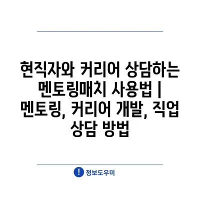 현직자와 커리어 상담하는 멘토링매치 사용법 | 멘토링, 커리어 개발, 직업 상담 방법