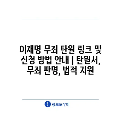 이재명 무죄 탄원 링크 및 신청 방법 안내 | 탄원서, 무죄 판명, 법적 지원
